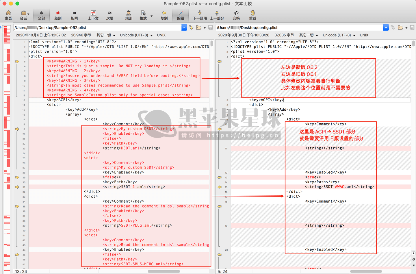 - 方案三,下载新版和旧版,使用代码对比工具比较两个版本的不同之处,再对正在使用的 config.plist 进行内容结构修改。