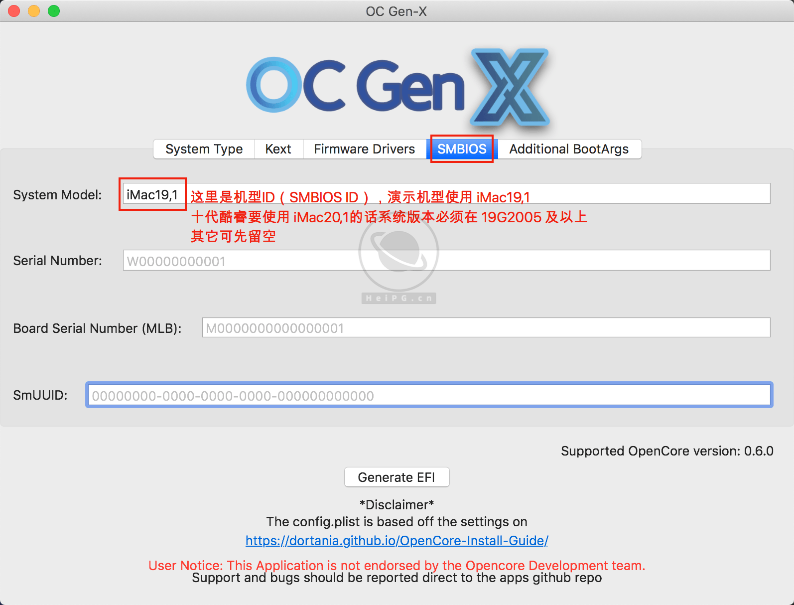 - 如何选择适合你的 SMBIOS ID,请参阅:SIMBIOS ID、Platform-ID速查表。
