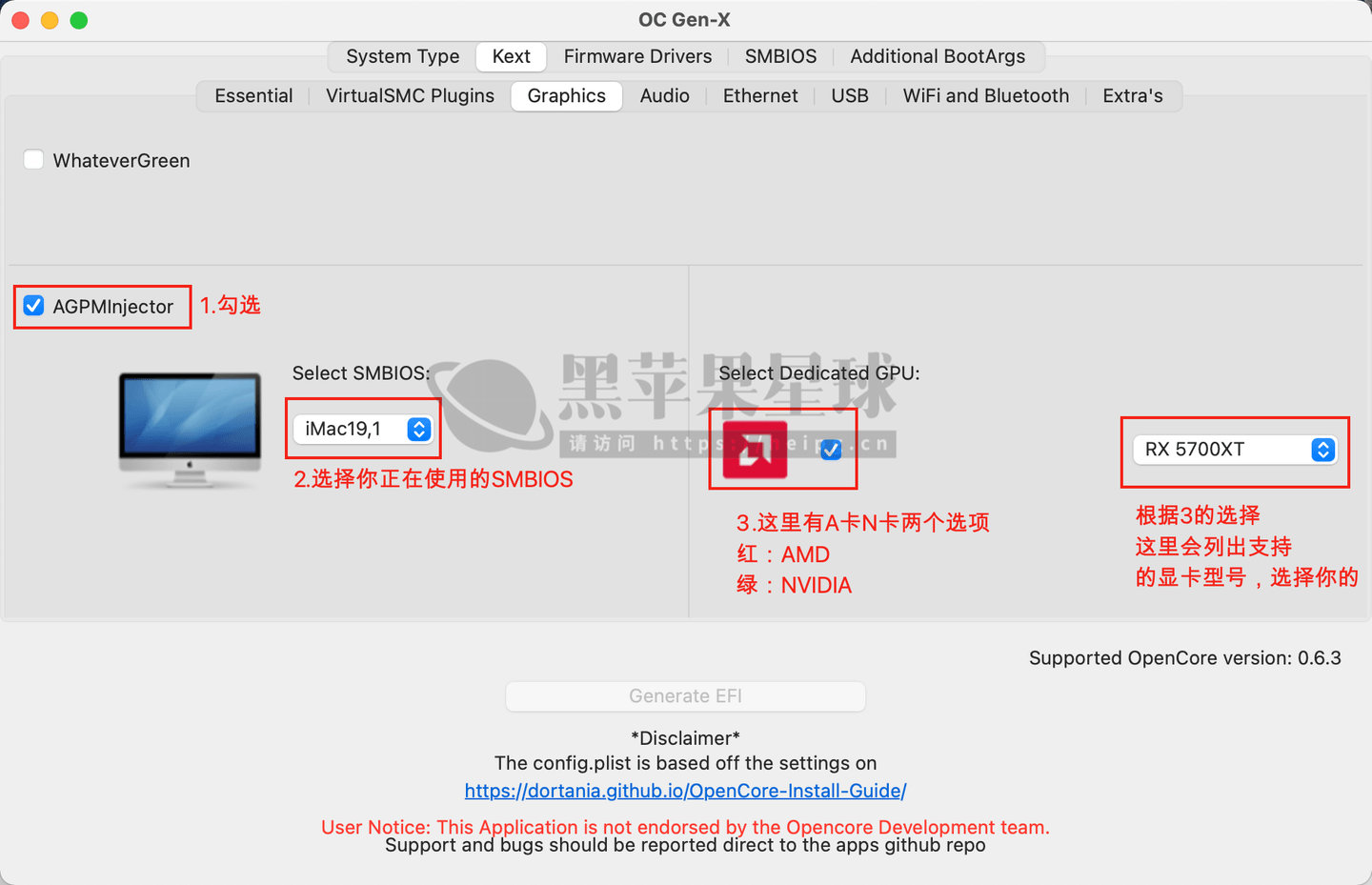2020年11月29日更新:2.7.0 以上版本集成了 AGPMInjector.app,生成的 kext 用于控制独显功耗等功能,照下图逻辑操作即可。